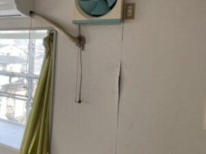 今回は賃貸マンションのオーナー様より、「雨が降ると外壁の換気扇まわりから雨水が侵入する」とのご相談をいただきました。雨漏りの影響で室内の壁紙も剥がれ始めており、早急な対応が必要な状況でした。