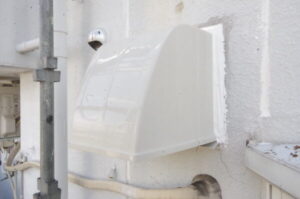 雨漏りの原因となっていた換気フードを新品へ交換し、周囲をコーキング(防水材)で厳重に充填しました。 さらに、将来の漏水リスクを抑えるため、ALC外壁の目地すべてにコーキングを施し、防水性を高めています。