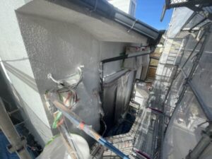 外壁塗装に際して先ずは外壁そのものに塗装を開始して行きます。外壁には付帯部という雨樋や庇などの