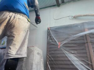 板金屋根部分もありますが、こちらは外壁の“壁”そのものの塗装が終わってから塗装を開始します。
