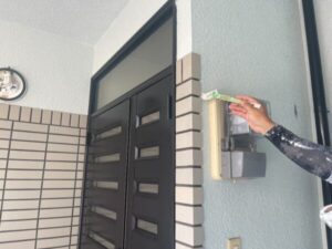 外壁塗装の定着性を高める為に下塗り塗料を塗装しました。