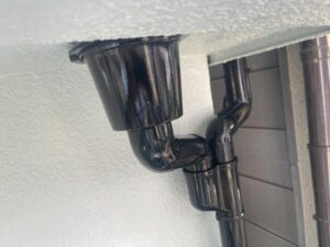 外壁部分の塗装が終わりましたら養生テープを剥がして雨樋や雨戸を塗り替えしました。