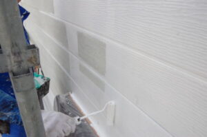 - 下塗り塗料を外壁に塗布しました。これは、次に塗る上塗り塗料の密着度を高めるためです。
