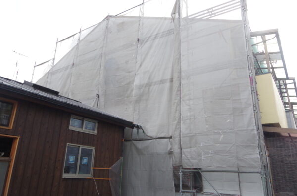 - 足場架けと高圧洗浄