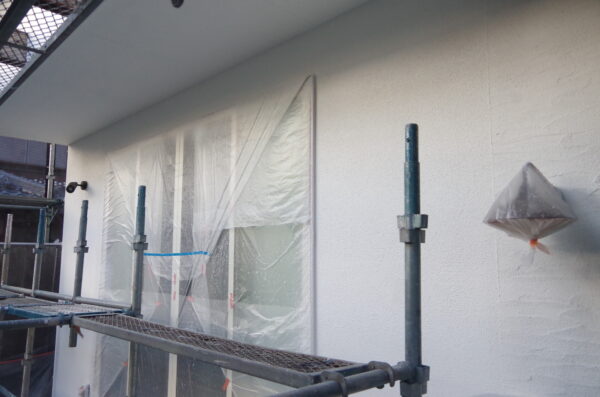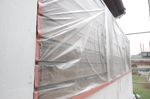 - 下塗り(水性ミラクシーラーエコ)https://www.sk-kaken.co.jp/product/undercoating-materials/miracsealer-eco-w/ 新しい塗料をしっかり密着させるため、外壁の隅々まで下塗り材を塗布します。