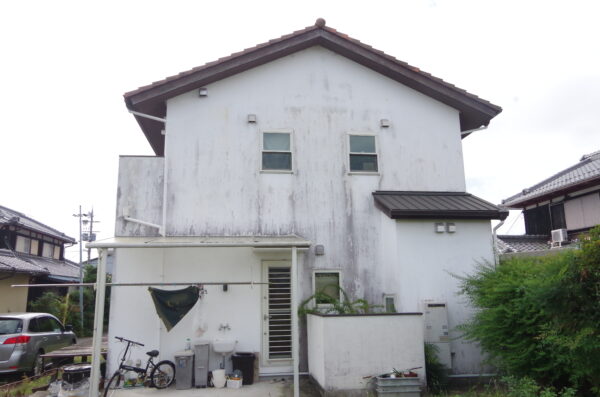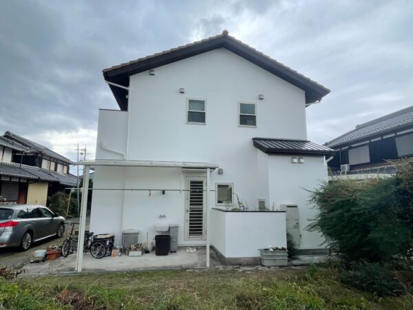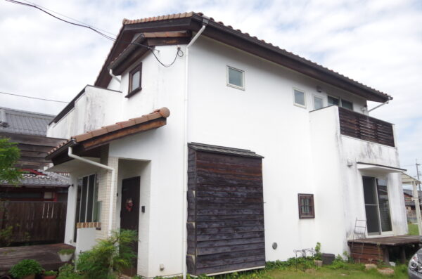 1.お洒落で個性的な南欧風住宅にお住まいの施主様ですが、築10年ほどで発生した**外壁の激しい「剥離(はがれ)」**に悩まされていました。 白い外壁のあちこちで下地が露出しており、施主様からは「新築時の美しい状態に戻してほしい」との切実なご依頼をいただきました。