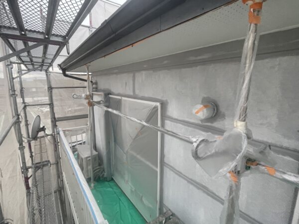 塗り替え作業において、塗料の密着性を高めて安定させるために「下塗り」を行います。 隅々まで塗り残しがないよう作業を進めました。